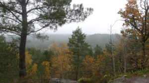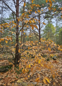 Nous l’avons parcouru le 08 novembre 2025, de 10h30 à 16 h30 , à rythme modéré et avec quelques pauses, soit six heures, dont à peu près quatre sous la pluie, une pluie le plus souvent fine, mais transformée peu à peu en pluie plus dense du fait de l’accumulation sur les feuillages encore bien présents.