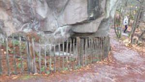 Si le balisage, renforcé ou simplement repeint est devenu exemplaire pour éviter que le commun des mortel puisse s’égarer, on a pu regretter les affreuses ganivelles en châtaignier plantées un peu partout, défigurant la forêt et les chaos rocheux.