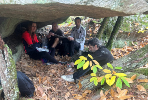 Hormis cela, tout s’est fort bien passé, avec une équipe motivée, dynamique, homogène et solidaire, y compris dans notre abri sous roche tapissé de feuilles mortes bien sèches investi le temps d’un déjeuner (un peu retardé !) tiré des sacs.