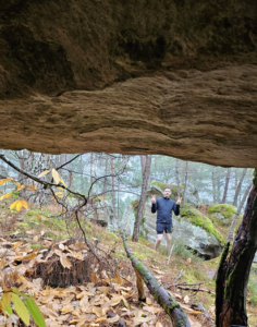 Nous avonds même pris le temps de chercher un peu la Grotte du Parachutiste, assez confidentielle car sentier peu marqué pour y conduire, et en partie enfouie sous son grand rocher.