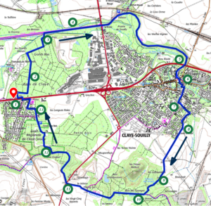 La promenade autour de Claye-Souilly compte 15 km, dontPromenade autour de Claye 842 10 en milieu boisé, 2,5 en milieu urbanisé, 2,5 en milieu agreste.