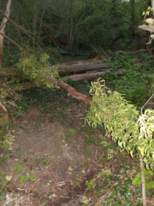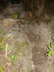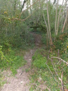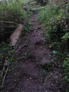 Il fallut améliorer le passage au sécateur pour éviter les incidents avec les petites branches à hauteur du visage ou les croc-en-jambes créés par les ronciers. Par ailleurs, recreuser des marches dans le sol, peu à peu déformées par les passages répétés notamment par temps pluvieux, transformant le sentier en toboggan ! Sécateur et piochon auront ainsi été mis en action,  très activement.
