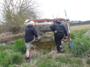 PK 07,00 Débarquement N°4 au pont de Varinfroy. Visite de la casemate de rive avec « toilettes », Eglise, lavoir en ruines et sente testée avec . succès à l’initiative de Gilles. 1800 m A/R