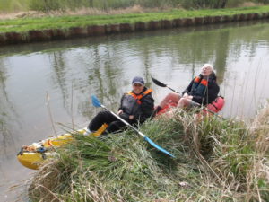 Pieds trempés…c’était annoncé ! Pour s’en préserver, des bottes (mais cela peut être pénible pour les parties marchéele ou des sacs plastiques très solides à n’enfiler que sur les kayaks. A prévoir et à gérer pour celles et ceux qui sont sensibles …des pieds !