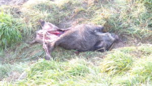Au cours de ce petit tronçon marché, j’aurai croisé un sanglier mort dans le fossé, sans doute venu finir sa vie ici après avoir été gravement blessé par un chasseur. (?)