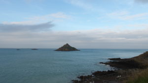 Le petit saut en automobile m’amène à court-circuiter l’ étroite pointe de Saint-Jacut, soit 10 km de littoral en moins. Il est 9 heures.