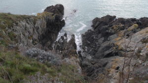 Ce GR en son début se faufile dans le petit port de Dahouët, dont le contournement est un peu agaçant…et je ne peux m’empêcher d’imaginer en traverser l’embouchure à la nage entre deux descentes de mises à l’eau…seulement 70 mètres !… Interdit évidemment, et pas à faire l’hiver avec un sac à dos !