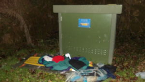 Je me suis calé contre un petit transformateur EDF cubique, bien pratique pour poser les affaires.