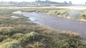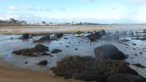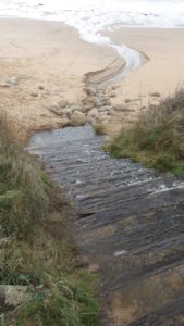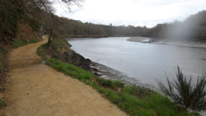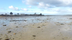 Mais je choisis de revenir à la côte, marée remontante déjà …Une grande rue et un bon sentier en prolongement mènent rapidement à un parking littoral, PK 16,50.