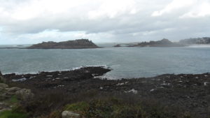 Mais la suite fut consolatrice, puisque pieds mouillés pour mouillés, la traversée fut entreprise sans me soucier de rien ou presque, une belle trace de 3 km environ jusqu’au port de Trozoul PK 07,60 en passant au large de l’Île de Toënno, ce qui livra un beau panorama marin, à mi-marée descendante.