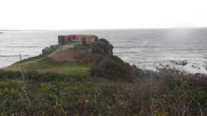 Désormais, je vais avoir pour principe de coller au GR 34, lequel a toujours son caractère montagneux, montant et descendant jusqu’à la Pointe Servel où sont à demi-enfouis deux ou trois ouvrages militaires allemands de 39-40. PK 18,00.