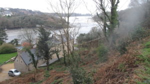 Mais hélas, la berge opposée était trompeuse…il n’y avait pas de terre sous les plantes de bordure !