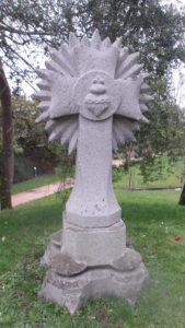 Là, ayant une bonne avance, je prends l’option du PR qui grimpe à la Chapelle Saint Dourien, d’abord avec une pente moyenne de 15% pour culminer à 72 m puis redecend doucement jusqu’à la chapelle, le tout par un chemin harmonieux, fort tranquille en milieu boisé aéré.