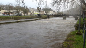 Le fleuve est bien actif, avec beaucoup de remous, et le parcours « kayak » qui aligne ses portes vertes et rouges ne serait pas facile à aborder sauf par des experts !