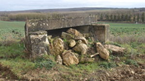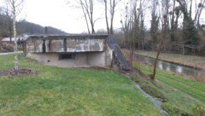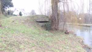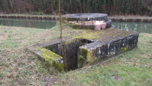 Sur le trajet, recherche et visite (rapide) des blocs de la Ligne Chauvineau qui sont sur la berge (toujours en rive droite), visibles du bateau.