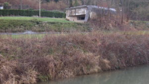 Les kayaks peuvent être soit amarrés avec antivols (symboliques !) soit rechargés sur un véhicule (si on en a pris deux) soit dissimulés dans le déversoir !
